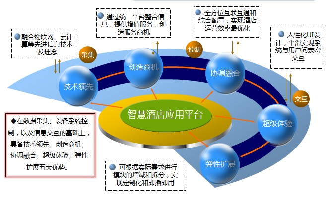 智慧酒店解決方案是一個不斷豐富、發(fā)展的領(lǐng)域??头孔鳛橹苯用鎸腿颂峁┓?wù)的場所,應(yīng)充分的考慮個人的隱私、個性化的需求,以及感受到高科技帶來的舒適和便利。同時,酒店物耗、 能耗、人員成本,也應(yīng)考慮降到最低,創(chuàng)造效益。