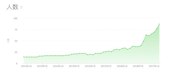 除了從一個設(shè)計外包公司轉(zhuǎn)型成了產(chǎn)品公司,2013 年開始遠(yuǎn)程辦公也是我們團(tuán)隊的一個非常大膽的舉動,后面我會介紹關(guān)于遠(yuǎn)程工作的原因和經(jīng)驗。先來看看,現(xiàn)在 4 年多時間過去了,我們團(tuán)隊從當(dāng)時的 10 來個人,成長到現(xiàn)在將近 100 人,我們?nèi)〉昧四男┏晒?/span>