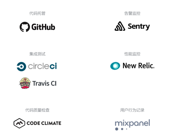 對于工程團(tuán)隊來說,最重要的幾個工具是代碼托管、集成測試、代碼質(zhì)量檢查、持續(xù)發(fā)布和服務(wù)監(jiān)控。我們曾經(jīng)自己搭建過 gitlab 服務(wù),3 年前的一次安全事故讓我們明白其實(shí)自己搭建服務(wù),并不比使用第三方靠譜平臺安全,所以后來我們就把代碼管理全部放到 github 了。