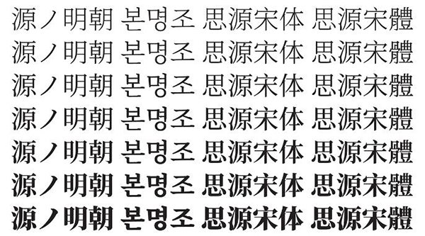 ▲ NotoSerif CJK 的七種粗細